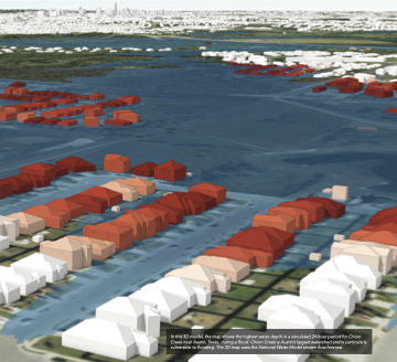 vulnerable to flooding. The 3D map uses the National Water Model stream flow forecast.