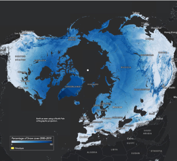 Percentage of Snow cover 2000–2019 Earth as seen using a North Pole orthographic projection. 0 100 Himalayas Technology Showcase 205