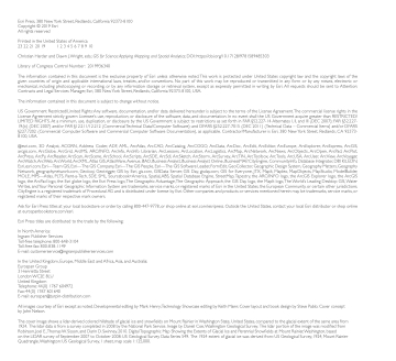 @esri.com, 3D Analyst, ACORN, Address Coder, ADF, AML, ArcAtlas, ArcCAD, ArcCatalog, ArcCOGO, ArcData, ArcDoc, ArcEdit, ArcEditor, ArcEurope, ArcExplorer, ArcExpress, ArcGIS, arcgis.com, ArcGlobe, ArcGrid, ArcIMS, ARC/INFO, ArcInfo, ArcInfo Librarian, ArcLessons, ArcLocation, ArcLogistics, ArcMap, ArcNetwork, ArcNews, ArcObjects, ArcOpen, ArcPad, ArcPlot, ArcPress, ArcPy, ArcReader, ArcScan, ArcScene, ArcSchool, ArcScripts, ArcSDE, ArcSdl, ArcSketch, ArcStorm, ArcSurvey, ArcTIN, ArcToolbox, ArcTools, ArcUSA, ArcUser, ArcView, ArcVoyager, ArcWatch, ArcWeb, ArcWorld, ArcXML, Atlas GIS, AtlasWare, Avenue, BAO, Business Analyst, Business Analyst Online, BusinessMAP, CityEngine, CommunityInfo, Database Integrator, DBI Kit, EDN, Esri, esri.com, Esri—Team GIS, Esri—The GIS Company, Esri—The GIS People, Esri—The GIS Software Leader, FormEdit, GeoCollector, Geographic Design System, Geography Matters, Geography Network, geographynetwork.com, Geoloqi, Geotrigger, GIS by Esri, gis.com, GISData Server, GIS Day, gisday.com, GIS for Everyone, JTX, MapIt, Maplex, MapObjects, MapStudio, ModelBuilder, MOLE, MPS—Atlas, PLTS, Rent-a-Tech, SDE, SML, Sourcebook•America, SpatiaLABS, Spatial Database Engine, StreetMap,Tapestry, the ARC/INFO logo, the ArcGIS Explorer logo, the ArcGIS logo, the ArcPad logo, the Esri globe logo, the Esri Press logo,The Geographic Advantage,The Geographic Approach, the GIS Day logo, the MapIt logo,The World’s Leading Desktop GIS,Water Writes, andYour Personal Geographic Information System are trademarks, service marks, or registered marks of Esri in the United States, the European Community, or certain other jurisdictions. CityEngine is a registered trademark of Procedural AG and is distributed under license by Esri. Other companies and products or services mentioned herein may be trademarks, service marks, or registered marks of their respective mark owners.